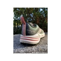 L’empeigne arbore un tissu rĂ©sistant Ă l’abrasion afin d’Ă©viter les dĂ©chirures en nature. Des perforations drainent l’eau hors du chaussant et l’empĂŞchent ainsi de s’accumuler.