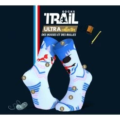 FabriquĂ©es en France, les chaussettes TRAIL ULTRA – Collector Neige Bleue ont Ă©tĂ© conçues en exclusivitĂ© avec Des Bosses Des Bulles. Une deuxième collaboration qui transpose un univers fun et dĂ©calĂ© sur des produits running et trail.