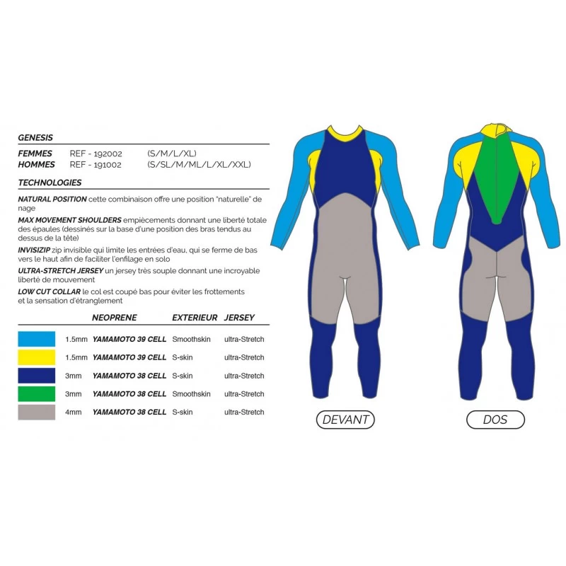 La combinaison triathlon Génésis 2.1, est idéal pour les débutantes. Une excellente combinaison à un prix très accessible, la Genesis à été redessinée, afin d’offrir une glisse optimale, du confort et un confort thermique idéal. La Génésis 2.1 est construit en n’utilisant que des néoprènes Yamamoto.