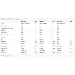 Préparation pour boisson avec apport glucidique, sous forme de poudre. Ne pas dépasser la dose recommandée. Il est conseillé de consommer ce produit dans le cadre d’une alimentation variée et équilibrée et d’un mode de vie sain. Tenir hors de portée des jeunes enfants. À consommer de préférence avant la date indiquée sous le pot. Bien refermer après ouverture. À conserver à l’abri de la chaleur et de l’humidité.