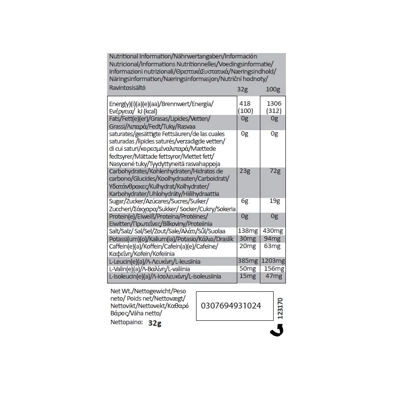 – Soutenir l’effort : les dglucides complexes prĂ©sents sous forme de maltodextrine (70 Ă 80% du mĂ©lange de glucides complexes/simples) stabilisent durablement votre taux de glycĂ©mie sanguine. Des citrates (citrate de potassium, de sodium et acide citrique) accĂ©lèrent la conversion de ces glucides en molĂ©cules Ă©nergĂ©tiques tout en attĂ©nuant la fatigue liĂ©e Ă la production d’acide lactique dans les muscles. Les acides aminĂ©s branchĂ©s (BCAA), leucine, valine et isoleucine, ont quant Ă eux pour rĂ´le de fournir une source d’énergie complĂ©mentaire et de faciliter la rĂ©cupĂ©ration. Parallèlement, ils peuvent amĂ©liorer la concentration et rĂ©duisent la fatigue en limitant la production de sĂ©rotonine par le système nerveux central. L’histidine, acide aminĂ© essentiel, se conjugue aux citrates pour jouer un rĂ´le tampon favorisant la neutralisation des montĂ©es d’acide lactique dans les muscles.