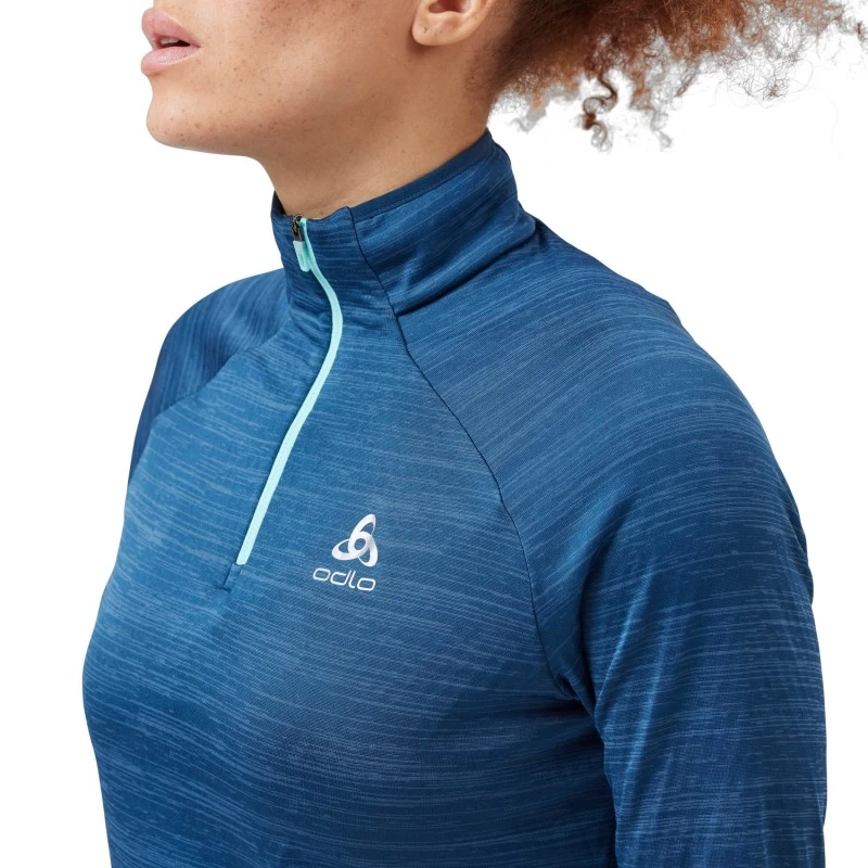 La matière légère, mais très performante du pull à manches longues et col zippé RUN EASY pour femme d’ODLO favorise une régulation thermique exceptionnelle durant la pratique hivernale de la course à pied. Les fibres techniques offrent un confort longue durée tout en stimulant l’évacuation de l’humidité, tandis que le col montant zippé bloque la chaleur à l’intérieur, ou apporte une ventilation supplémentaire lorsque vous en avez besoin.