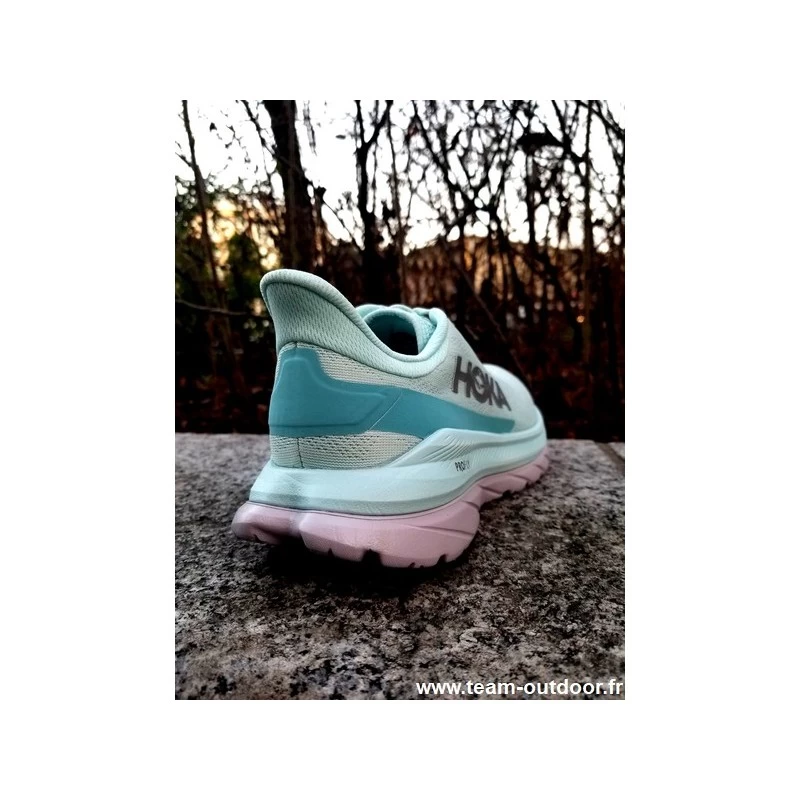Dans sa quatrième édition, la Mach 4 se veut innovante tout en s’inspirant de la Rocket X et la Carbon X. Conçue pour couvrir de longues distances, ce modèle offre une foulée énergique et un effet dynamique sous le pied, une sensation sans conteste HOKA.