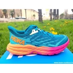 éritable superstar du trail technique, la Speedgoat revient dans une toute nouvelle version, transformée de la semelle externe jusqu’au bout des lacets. Ce monstre de trail se dote de la technologie Vibram® Mega-Grip avec crampons Traction Lug pour une adhérence et une puissance de freinage optimales sur sol meuble. Avec 15 g de moins et beaucoup plus d’accroche, cette cinquième édition de la Speedgoat présente de nombreuses améliorations axées sur la performance.