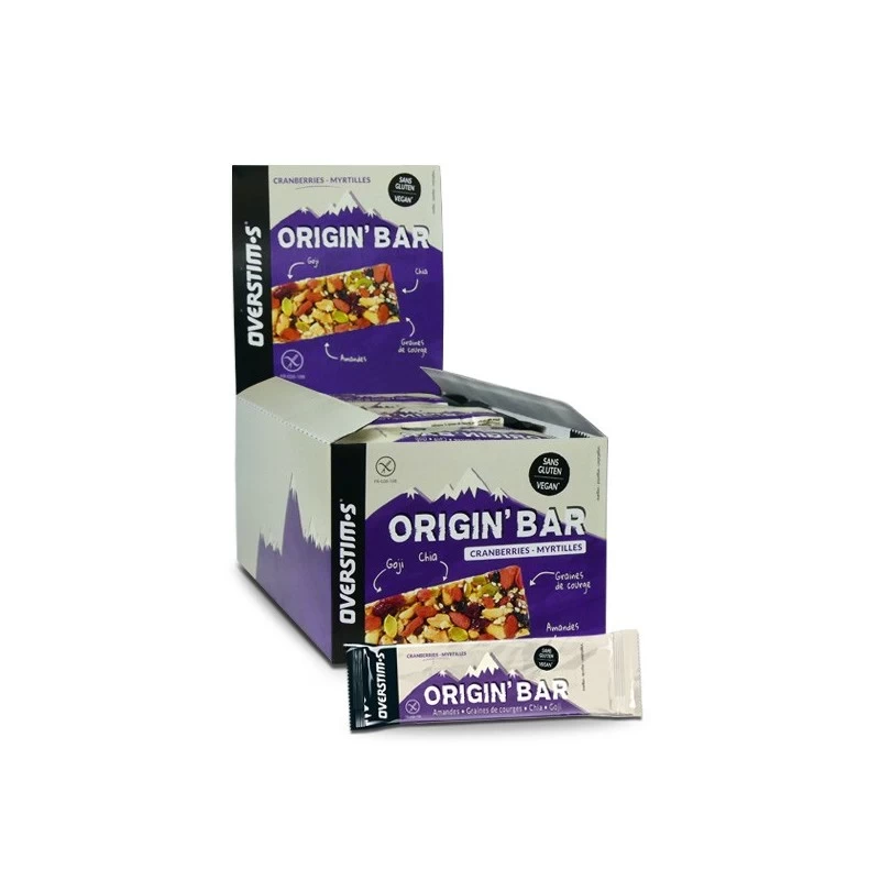 La barre Ă©nergĂ©tique ORIGIN’ BAR complète l’action des boissons et gels Ă©nergĂ©tiques OVERSTIM.s et se consomme pendant l’effort Ă intervalles rĂ©guliers.
