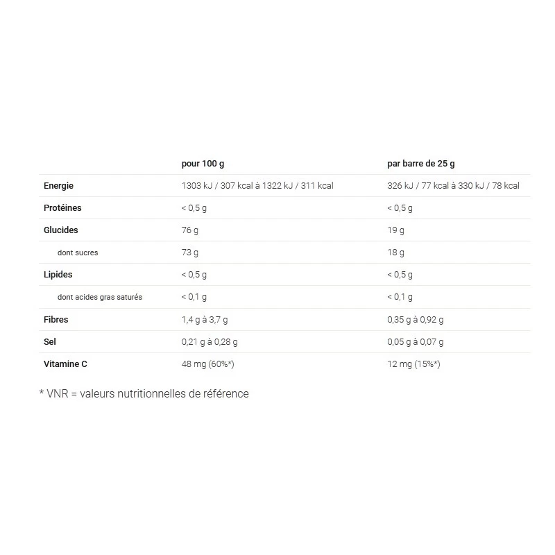 Les pâtes de fruits bio OVERSTIM.s contiennent 50% de fruits bio pour un apport d’énergie gourmand et naturel. Elles se consomment facilement avec leurs textures fondantes. Sa vitamine C d’origine naturelle (Acérola bio) contribue à réduire la fatigue.