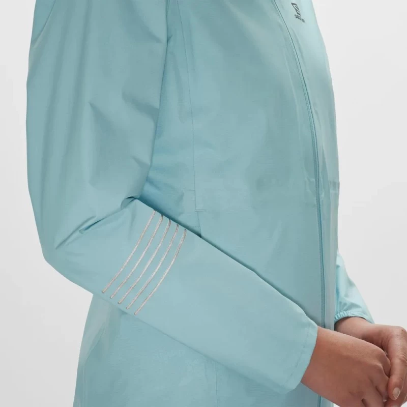 La matière et la membrane sont collées ensemble. La membrane est protégée par un imprimé. Le vêtement n’a pas besoin de doublure, gagnant ainsi en légèreté.